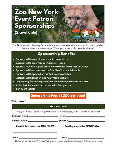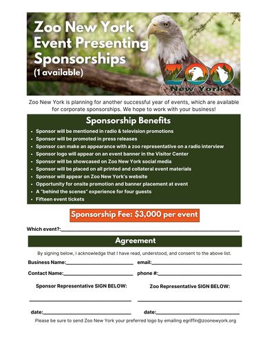 Contact info@zoonewyork.org or call (315) 782-6180 to secure your sponsorship!